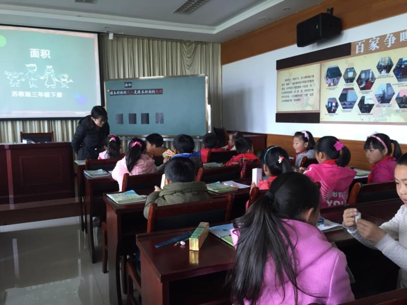 本次活动,张旖老师和童晓霞老师分别执教了一节《认识面积》、《绘制校园平面图》,课前两位老师认真研读教材,从分析学情、教材入手制定了相关的教学目标。张旖老师在课堂中通过让学生“摸一摸”物体表面,直观感知物体表面的大小,从而抽象出“面积”这一概念,继而通过比较四种不同大小、形状的平面图形,在学生的操作中归纳出面积的比较方法有:观察法、重叠法、数方格等方法。童晓霞老师大胆尝试了一节综合实践课《绘制校园平面图》,这节课童老师在组织学生综合运用所学的方位、方向等知识,在校园内开展测定方向的实践活动后,用画平面图的方式记录观测的结果。活动交流时,各位老师各抒己见,通过一次次思维的碰撞,大家对两节课的认识更加深刻了。