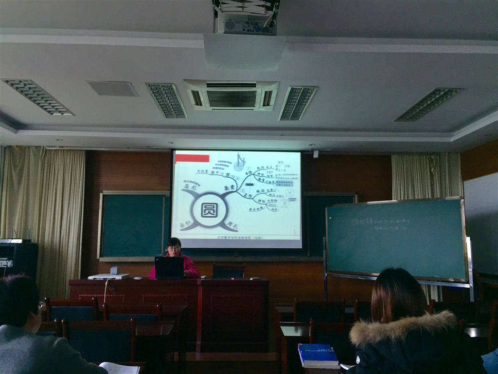 童老师先给大家介绍什么是中国学生发展的核心素养,以及核心素养的学科表达,重点阐述了数学学科素养的表达。接着丁主任作出总结,她提出:每位老师要多看书,增强自己的理论知识,提升自身的数学素养。