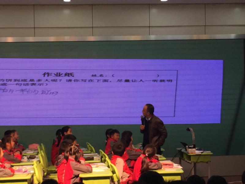 春江中心小学汤华锋老师执教六年级内容《确定位置》,周卫东校长执教三年级内容《认识分数》。两节课都能紧扣教学目标,精心设计每个环节,有设计感、有推进感、有带入感。汤老师的课扎实、细腻,周校长的课则大气、厚重。周卫东校长基于特级教师的眼光与对教材、对儿童的精准解读,对《认识分数》一课进行了全新的设计,完全不同于以往众多教师的设计。别样的设计,别样的教学,带来别样的精彩,让所有听课老师眼前一亮。