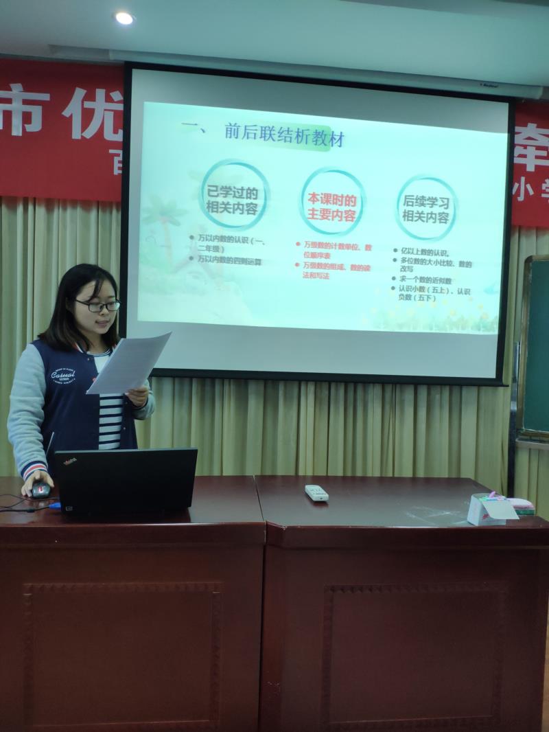 为促进我校数学青年教师的快速成长,培养青年教师研读教材、处理教材的能力,提高课堂教学水平,本次数学教研活动围绕以“说”促“教”的目的,于10月25日下午开展了一次“小学数学青年教师说课基本功比赛”。,本次比赛由“新秀成长团”的六位青年教师参加。