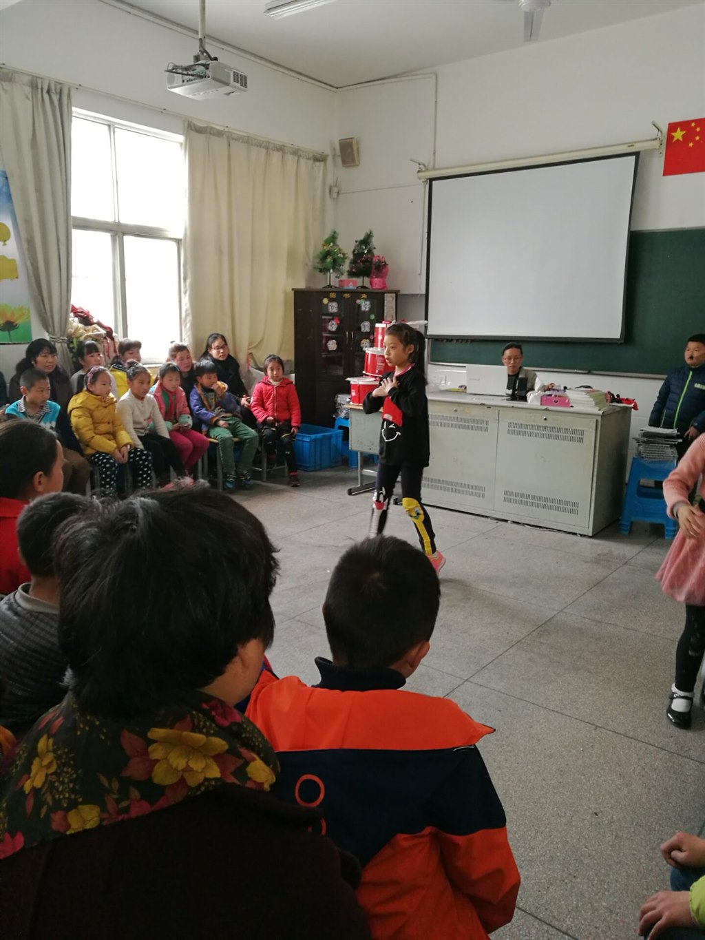 感恩篇里,所有三年级的孩子齐唱《感恩的心》,不但感激父母的相伴,感激老师的教育,更加感激所有给过自己关怀的人。幼稚的手语虽然做得并不是那么整齐,但父母亲眼中闪动的泪光已经是对孩子最好的肯定。音乐的最后一段,很多孩子更是情不自禁地投入了父母的怀抱,或在他们的脸上印下深深的一吻,此时,整个会场被温情包围。