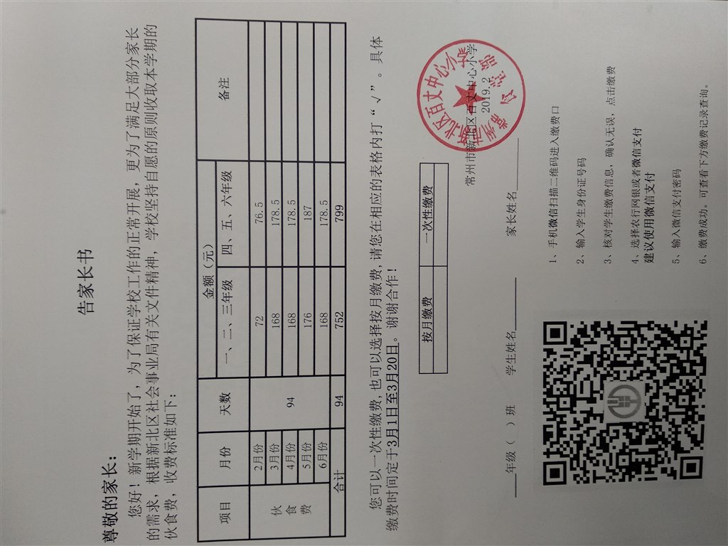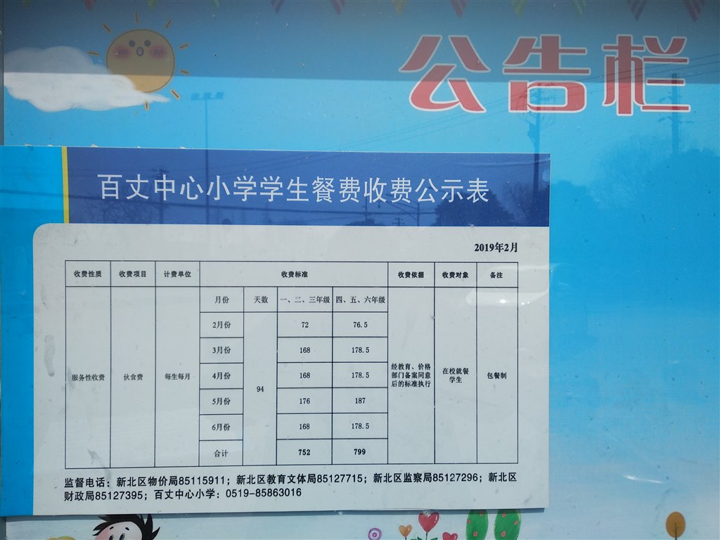 2018-2019第二学期百丈中心小学学生餐费收费公示