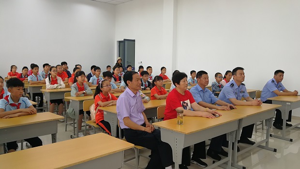 仪式结束后,李主任带领孩子们遥看种植园和军事五项训练馆,在体能训练中心体验各种训练器材,通过警用装备实物展示、警体防身技能演示教学等多种方式,对安全、防防范暴力恐怖袭击等方面的安全知识进行了生动又形象的宣传讲解。