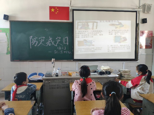 学校通过校园广播、主题班会、宣传板报、知识竞赛等方式。让学生了解“防灾减灾日”的来历,地震基础知识,地震发生时如何从室内撤离,在户外如何预防地震以及地震应急措施和自救互救常识。使学生明白遇到地震,一定不要惊慌,马上就近选择安全的地方躲避。如果住在平房,就迅速逃到室外,到空旷的广场上蹲下,护住头部,切记远离树木、河流及高压线。住在楼房也别急,遇到地震别跳窗,别坐电梯,迅速躲在室内结实的家具下,或者有承重墙且空间较小的房间里,比如卫生间、厨房。然后用身边能找到的任何东西护住头部。等地震稍微缓和一些再逃到室外,给家人报平安。