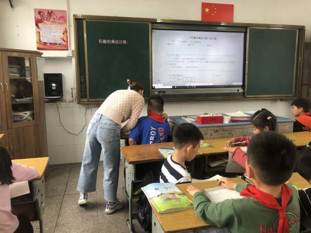 四月十三日下午一点,阳光明媚,百丈中心小学数学组开展了本学期的第十二次教研活动,本次教研分为两部分,第一部分沈茜执教《有趣的乘法计算》,第二部分各位听课老师评课议课。
