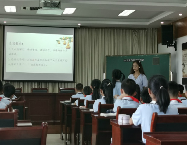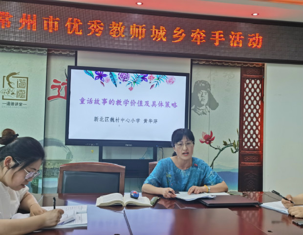 6月8日,常州市优秀教师城乡牵手活动在常州市新北区百丈中心小学三楼开展了本学期最后一次牵手活动,新北区学校同行及百小的全体语文老师参加了本次研讨活动。本次活动依旧延续以课堂教学展示为主线,以听课和互动交流的方式展开。由经验丰富的黄华萍校长引领,我校徐芳和宋承奚两位青年教师为大家带来了精彩而又生动的童话课。
