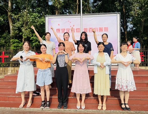 在百小,有默默耕耘着可爱的老师,他们为学校的进步和发展,为学生的成长付出了辛勤的劳动。接着,全体教师被分成六个年级组依次上台亮相,他们或热情奔放,或活力四射地展示自己的教育信念。孩子们热情地鼓掌欢呼,将开学典礼推向了一个高潮。那是他们在为在辛勤耕耘、默默付出的老师们表示最真诚的感谢。