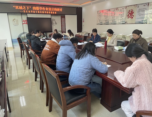 为响应国家的双减政策,减轻学生的课业负担,提高教学效率,进一步提升教学质量,12月2日下午,百丈中心小学全体数学教师齐聚一楼会议室,如期开展第十四次教研活动。本次教研活动由两个环节组成:第一节课是围绕“双减”背景下的数学作业设计进行主题沙龙,第二节课是对三、五、六年级数学作业检查。