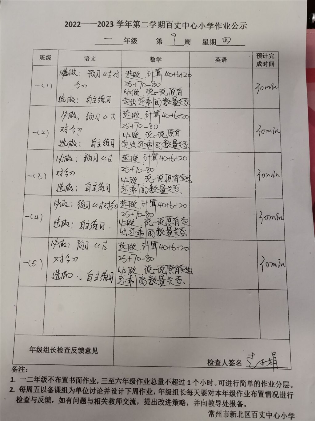 2022-2023学年第二学期第九周周四作业公示