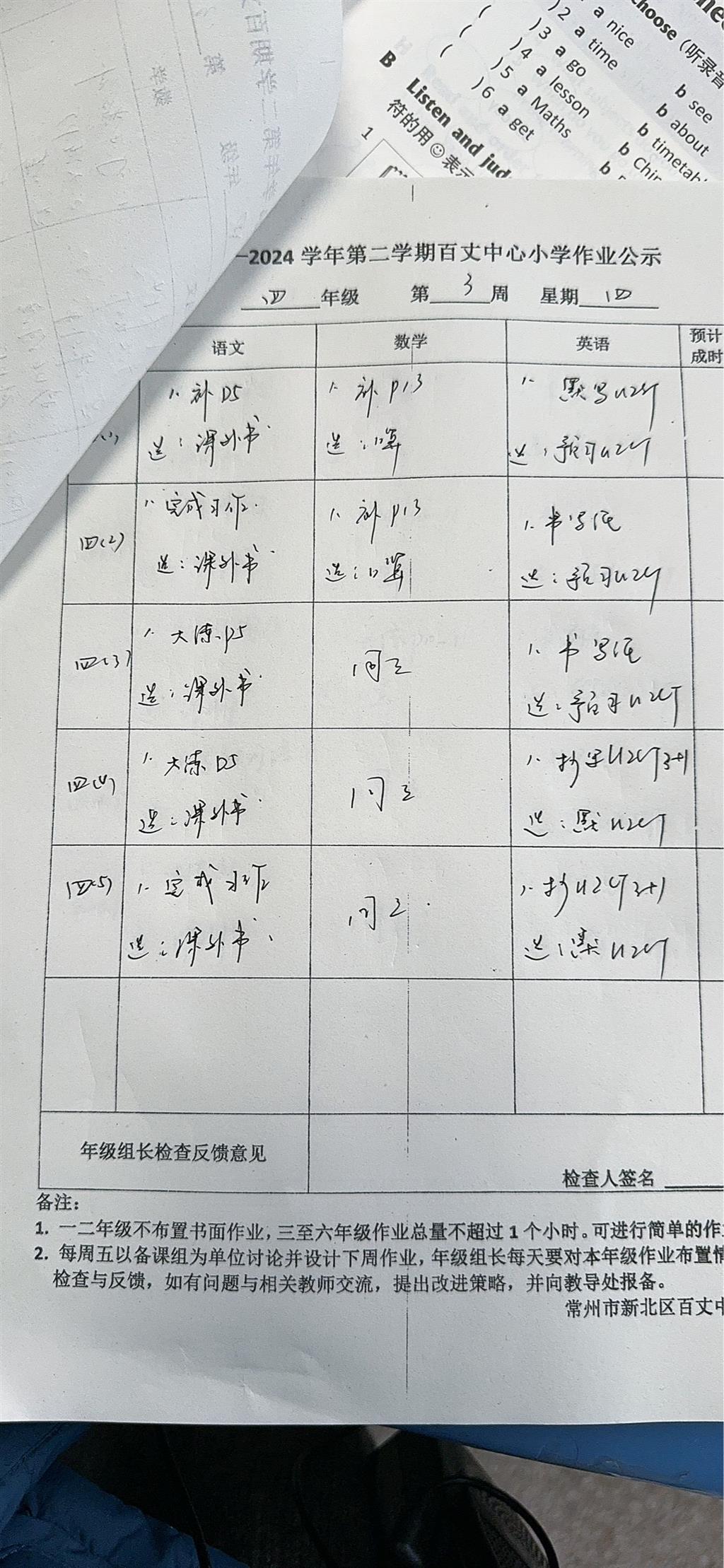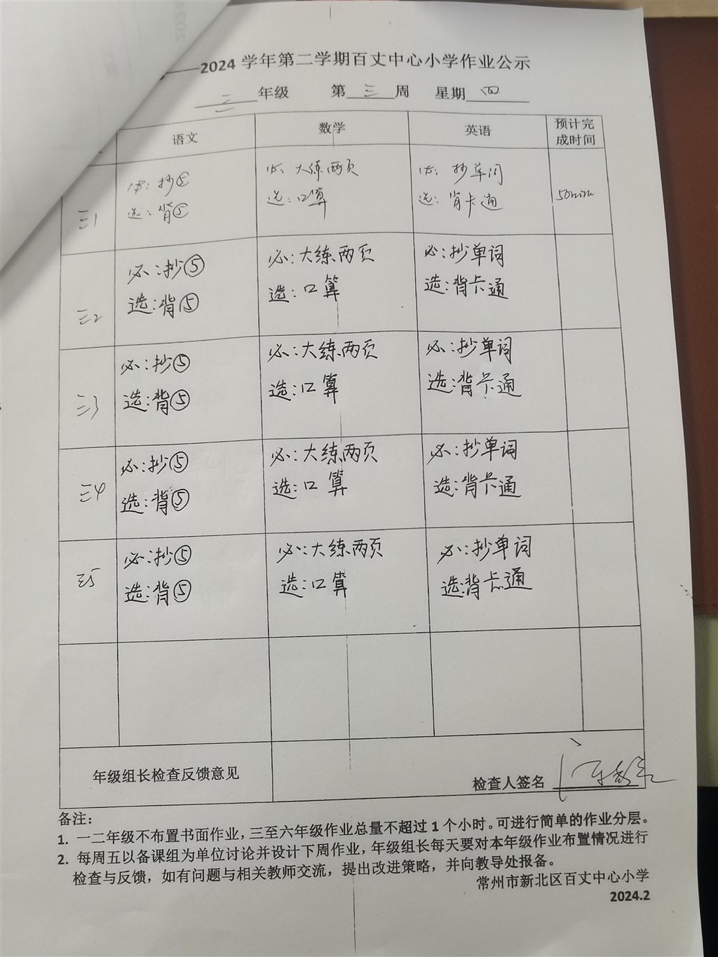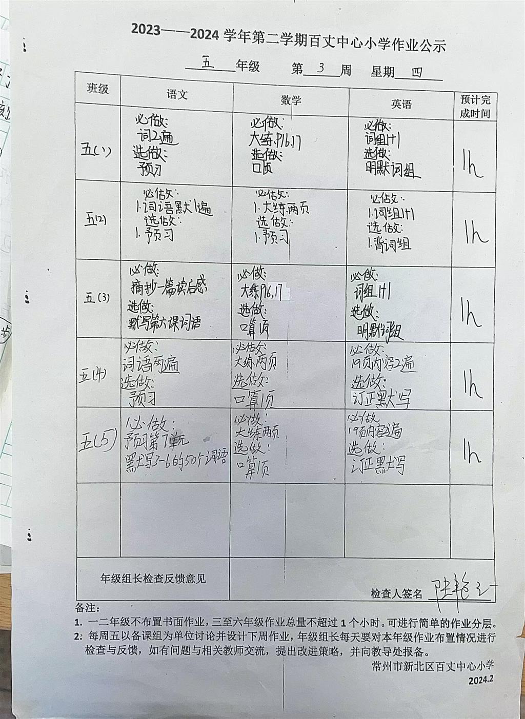 2023-2024学年第二学期第三周周四作业公示