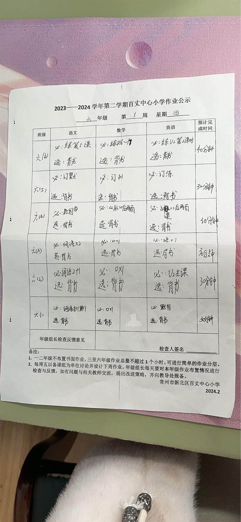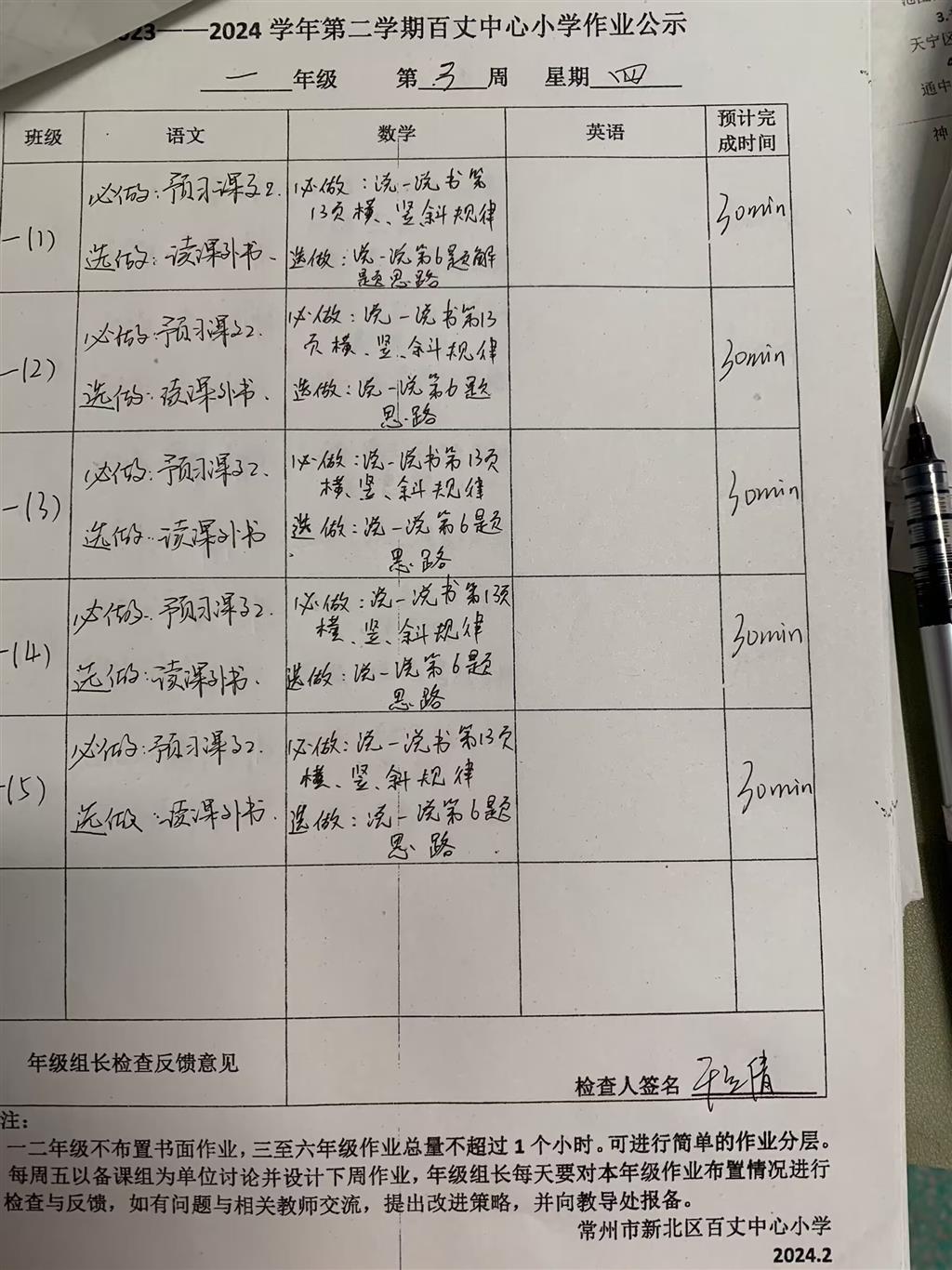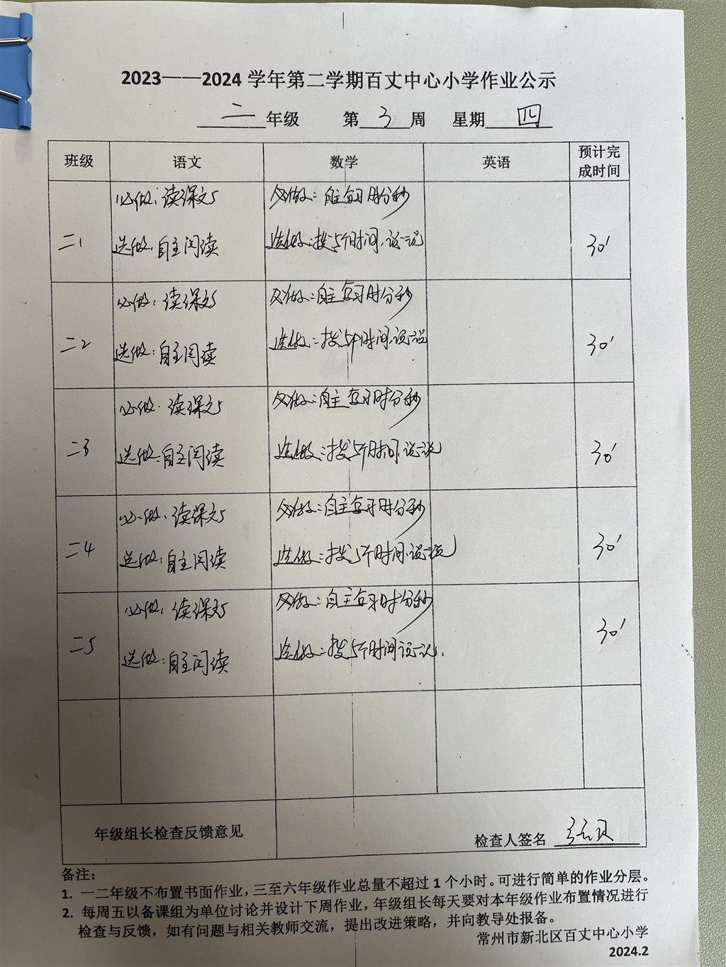 2023-2024学年第二学期第三周周四作业公示