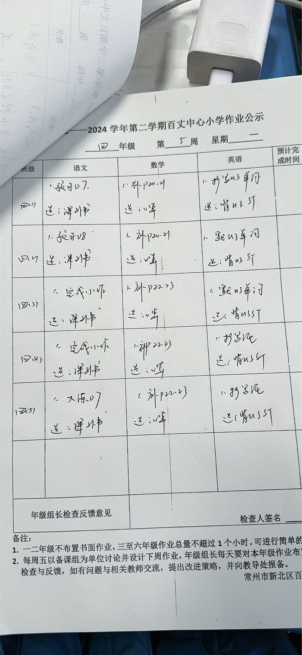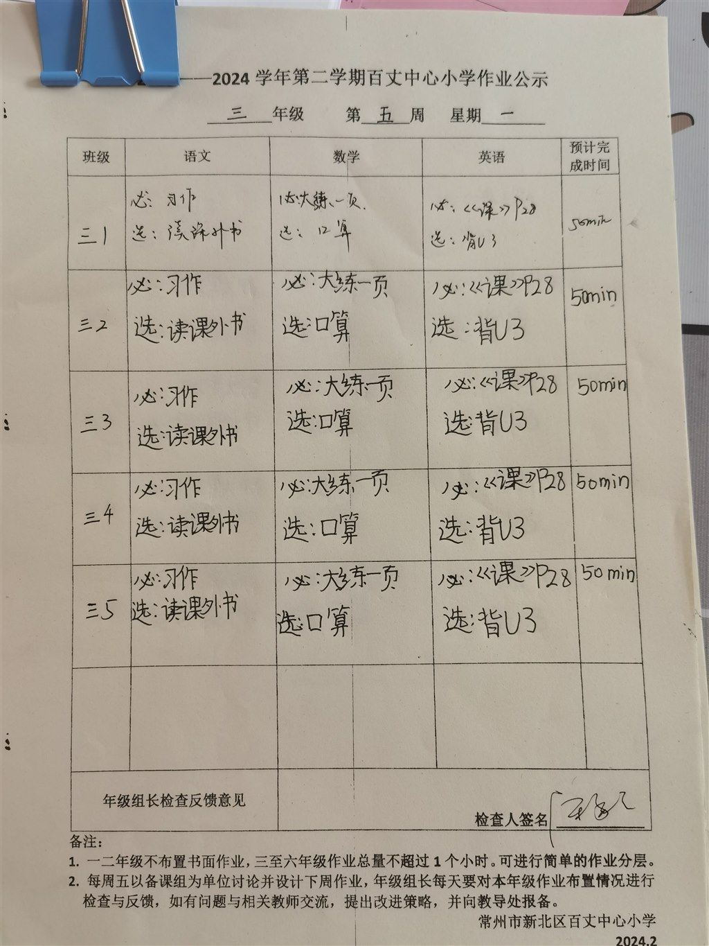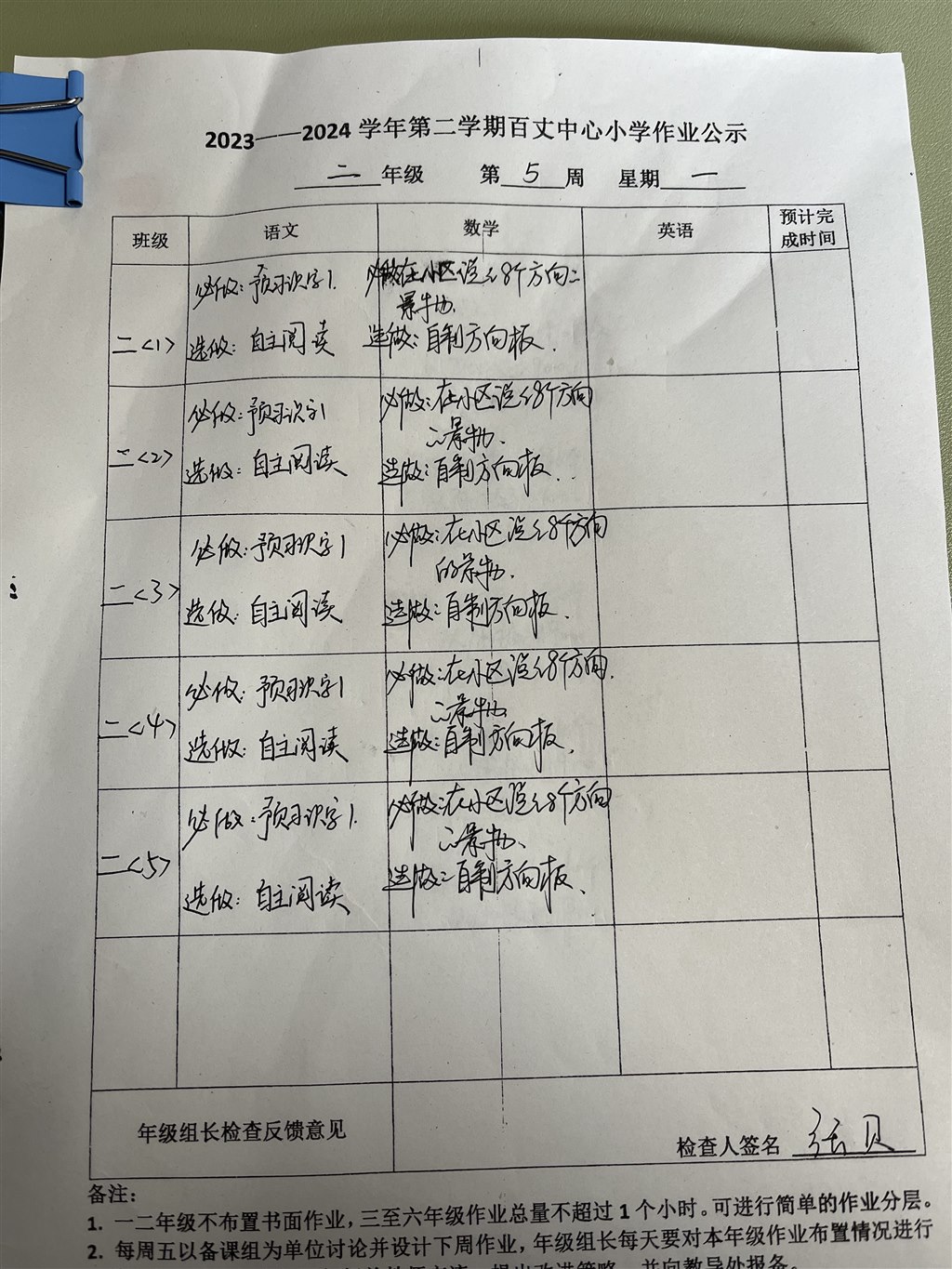 2023-2024学年第二学期第五周周一作业公示